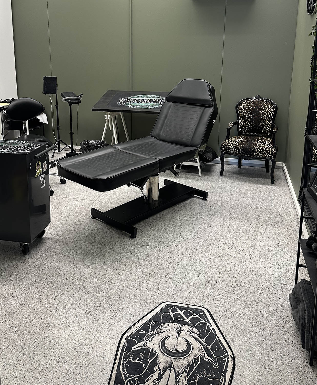 Studiotilat on remontoitu syksyllä 2024 ja ne täyttävät kaikki viranomaisvaatimukset – tila on terveysviranomaisen hyväksymä ja suunniteltu erityisesti tatuointityötä varten.